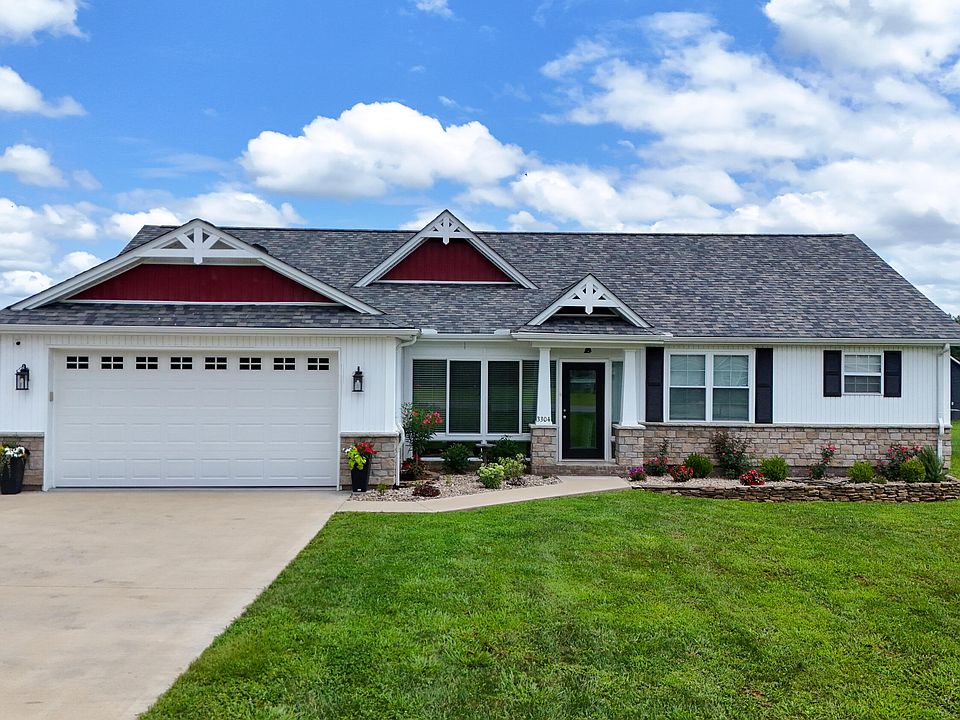 Welcome to this beautiful 4 bedroom, 2 bath home nestled in the desirable Elk Run Estates. This well-maintained residence offers an inviting open floor plan with gorgeous hard wood flooring throughout the main living areas, complemented by durable tile floors in the bathrooms. Enjoy cooking and entertaining in the modern kitchen featuring sleek granite countertops. The spacious master suite includes a private ensuite bath for your comfort and convenience. Relax year-round in the light filled sunroom or step out to the covered deck perfect for gatherings or peaceful evenings outdoors. Entire home has been newly painted