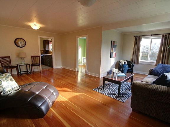 This beautifully updated 3 BR home is in turn-key condition in & out - a move-in ready gem for the 1st-time buyer or down-sizer. Owner is a master tile-setter so the kitchen & bath are TRICKED OUT! Gorgeous VG Fir floors throughout the living area & BR's. Dining area off the kitchen + abundant cabinets. All windows vinyl. Nice utility/mud room, W/D included. Super clean, detached 660SF garage/shop. Fenced back-yard lawn & URMX zoning may allow subdivision & multiple other uses.