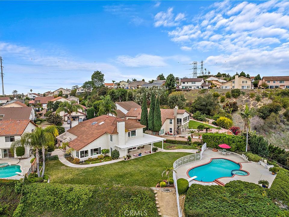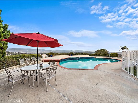 Oversized cul-de-sac pool lot with 180 degree horizon line view of the city, mountains and skyline. Flat open grass yard, custom hardscape, newly painted rod iron fence, sparking well maintained pool, rose & hydrangea garden, mature landscape and oversized covered pergola. Side yard includes built in gas access for BBQ, second seating space, sun shades, built in storage unit and privacy fencing to hide garden tools and waste cans. Property line continues down the hill providing extra privacy and unobstructed views for this prize lot and property. Large sprawling house with high ceilings, ample natural light and 5 large bedrooms including a main floor en-suite bath and bedroom. Enter thru the grand double front doors into the large welcoming foyer, formal dining, step down into the living and conversation nook with cozy fireplace. Large updated kitchen with designer granite counters & back-splash, high end cabinets, stainless steel appliances, built in pantry and moveable center island, garden window, eat in kitchen nook and double doors out to BBQ area allow for ample entertainment space for your next event. Large family room with double pane slider & windows leading out to the backyard and covered patio open to wide views and a huge yard. Grand staircase leads you upstairs to three large guest bedrooms including an attic inspired ceiling bedroom hide away and large hall bathroom. The oversized private Primary suite totals up as 4 bedrooms upstairs and suite includes an additional sitting area with a stone fireplace use this area as a retreat or a den. The Primary suite is loaded with upgrades including a cove ceiling, bay window and large built in closet with attic access for more storage. Lay in bed and enjoy the dynamic views thru the seasons ranging from snow capped mountains to sunset to sparking city lights. Primary suite bathroom boasts a separate soaking spa jet tub, designer tiled shower, double sinks and custom framed mirrors. This property offers ample storage and one where form truly meets function with smart design. The large pass thru laundry room with extensive storage space and secondary pantry or deep utility closet leading out to a three car garage with build in cabinets and an oversized driveway to provide lots of personal parking and storage space. This property has not been on the market in over 40 years and has been impeccably maintained. Close to dining, shopping, churches, school and community events.