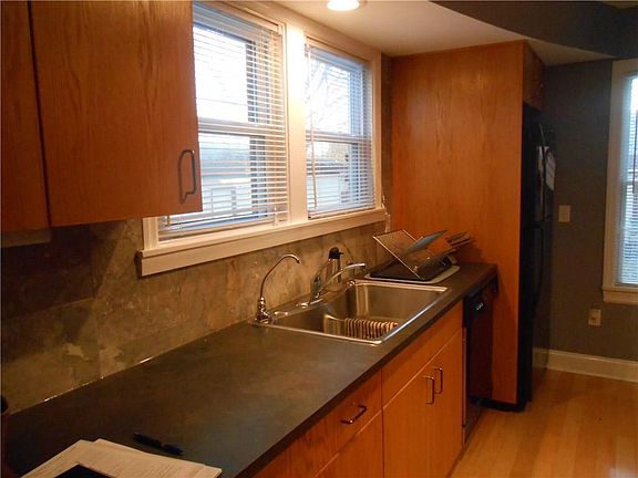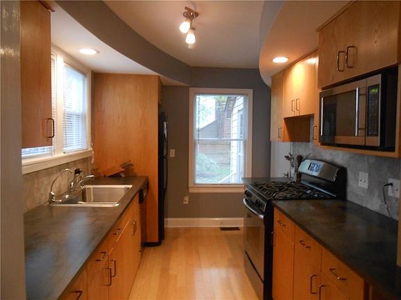 Modern style inside with brick character on the outside. Some unique architectural features. Maple hardwood throughout, with new carpet in the bedrooms. Freshly painted, quaint backyard, Must see!!
