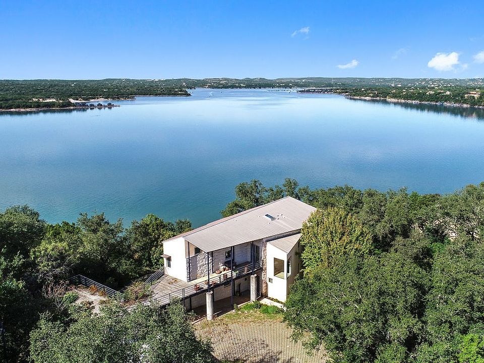 Rare opportunity for acreage on the South shore of Lake Travis. This secluded waterfront oasis has not been offered for sale in 39 years. Over 200 feet of deep water frontage looking across the lake's main body to Arkansas Bend Park. Although the value is in the land itself, this Lawrence Speck designed Hill Country Modern home has earned awards for outstanding artistic qualities. Stone steps lead to the water. Boat dock allowed. Shops, restaurants, hospital, and recreation close by. Lake Travis Schools!
