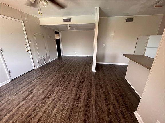 Located 1.1 miles from the University of Texas, the Shanti apartment complex is ideal for those commuting to campus or seeking a central location near downtown. Unit 204 has vinyl wood flooring throughout, a kitchen with dark wood cabinets and a dishwasher, and bedrooms with ceiling fans, built-in dressers, and spacious closets. The property includes an on-site laundry room, a community pool, and two parking spaces.