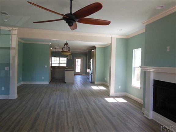SPECTACLAR ESTATE WITH SOMETHING FOR EVERYBODY. Pool with Tiki Bar and deck for entertaining friends, family and/or grandkids. An oversized, insulated workshop on slab. Add in an 20 amp 24 x 24 carport with room for a boat and/or tractor. Top it off with an open floor plan perfect for entertaining and you have a must see. Pride of ownership is evident from the moment you pull in the driveway. Fabulous coastal cottage in a waterfront community on Blackwater Bay. Welcome to wide open views of the private community park and the sparkle of the bay waters. The home is designed for carefree living with James Hardee board siding, dimensional shingle roof, big covered porches front and back, fabric shield hurricane protection for all openings and covered parking. So come in the custom 8' front door. All rooms have 9' ceilings with crown molding. Oversized baseboards, high end lighting, custom woodwork, custom colors, gas log fireplace, great flooring and big windows all add to the coastal look of this home. The kitchen features beautiful khaki shaker cabinets, Samsung stainless steel appliances, deep kitchen sink, 5 burner gas range and oven, center island AND a breakfast bar. There is plenty of closet space plus a big 7x8' walk-in attic on the main floor for all that extra stuff, like holiday decorations or other seasonal items that don't go in the attic. Location is easy access to Pensacola (20 min), straight shot to Gulf Breeze, easy shopping in Milton and a perfect spot for a those who need to be near Eglin and NAS and Whiting. House is front line ready! House was built up above Ivan storm surge level. Call today for appointment before it is gone.