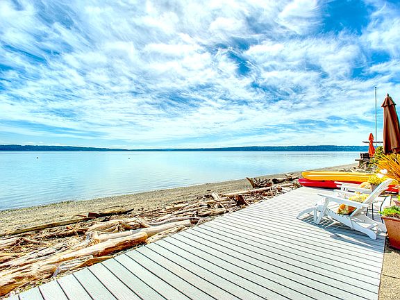 Three Tree Point Waterfront. Unimpeded Southern Exposure views from Mt. Rainier to Vashon. Highend construction w/ full beach cabana, beach patio w/gas FP & sandy bch. Attached oversized gar w/bch access Bath. Open concept floor plan has vaulted ceilings, 2way gas FP, sound view decks off most rms. Lrg master ste has ofc/2nd walk-in, waterfront view deck, splash shower, jetted tub, his/hers vanities, vaulted ceilings, custom closet. Cabana incl wet bar, elec fp, rollup door, all util & media. For a private tour, please call Matt Parker at 206-226-8323 or go to http://mattparker.kwrealty.com.