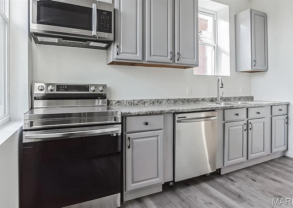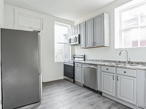 Extensively rehabbed duplex right in between TG East, Gravois Park, and Benton Park West. Good size units with two private bedrooms and a private living room in the front of the building. Large bedrooms, living room, and bathrooms. Tons of updates here including: Central HVAC, All PVC Plumbing, roof TPO, electric water heaters, vinyl windows, vinyl flooring throughout and tile tub surround. Second floor has an extra room toward the front of the building! Very low maintenance. Both units were paying $1,200 each, HOWEVER, first floor is now vacant. Second floor is locked in until 3/23/26. There's a two car garage behind the building with brand new garage doors. Needs garage door openers.