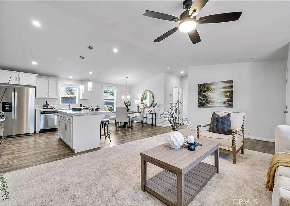 3 Bedroom, 2 Bath 1335 SF NEVER LIVED IN/New Manufactured Home on PERMENANT FOUNDATION (433A CERT). Kitchen with all new stainless appliances, large kitchen island with breakfast counter opens to formal dining area and living room. Great room concept perfect for family. Private ensuite primary bedroom with large private bath that has a walk in linen closet. Full bath in hall with shower in tub. Huge/High 3 car garage 20 x 40 (est 800 sf) plus a big work area; RV Parking with pull through lot from Richard Ln to Danny Ln with front gate and back gate access. Custom blinds throughout. Indoor laundry room. Concrete driveway. Vinyl fence in front. Fully fenced in lot for privacy. 3-ton air conditioning unit. Freeway close, shopping nearby. County is working with Danny Lane owners: Planned asphalt street (similar to Richard Lane, behind garage).