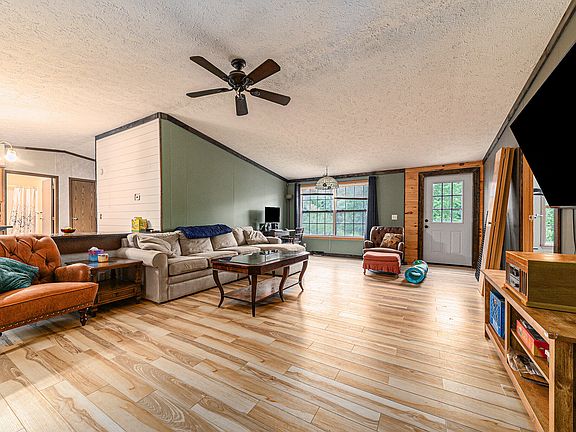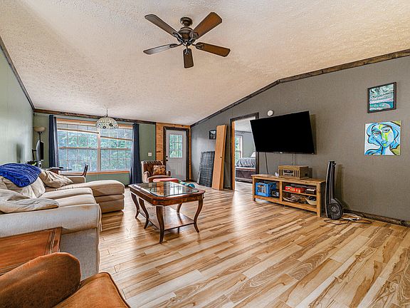 Amazing private 6.2 acre parcel with pond is the setting for this large manufactured home. with attached 32' X 40' 4 stall pole building. The main floor features large kitchen, dining area, oversized living room, primary suite with private bath, 2 additional bedrooms and additional full bath. Lower level walk out basement for storage or ready to finish off for more living space. Exterior features attached pole building with two double overhead doors and attached steel shelves. Seller has installed solar system that covers most of the electric bill and has battery capacity to run the house for 5 days if power goes out. Buyer to assume the loan agreement or finance with company of choice which is $250 per month.