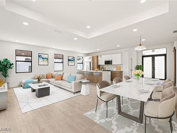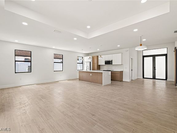 The oversized lanai is set up for an outdoor kitchen, and the massive lot offers plenty of room for a pool. Inspectors rave about the home's top-notch construction. The smart layout separates the social and private areas with two distinct living spaces. The home also features hurricane-resistant doors and windows, a finished 2-car garage with a quiet motor, insulation, a door, and a window, allowing it to be easily converted into an additional guest room with kitchenette. Plus a long driveway that can accommodate four additional cars.