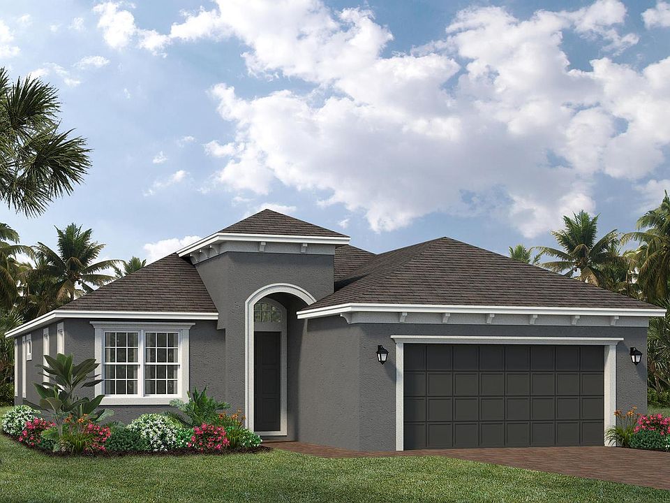 (1855 sq.. ft.) is a 1-story home with 3 bedroom, 2 bathroom, 2 car garage, great room, kitchen with cafe area, flex room and covered lanai. Options include bonus room with full bathroom, study, and master with bathtub.