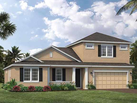 (1943 sq.. ft.) is a 1-story home with 3 bedrooms, 2 bathrooms, 2 car garage, great room, kitchen with cafe area, flex room, and covered lanai. Options include bonus room with full bathroom, 4th bedroom, study, master bathroom with bathtub, and a parting wall between cafe area and great room. (Bonus room adds an additional 481 sq. ft.).