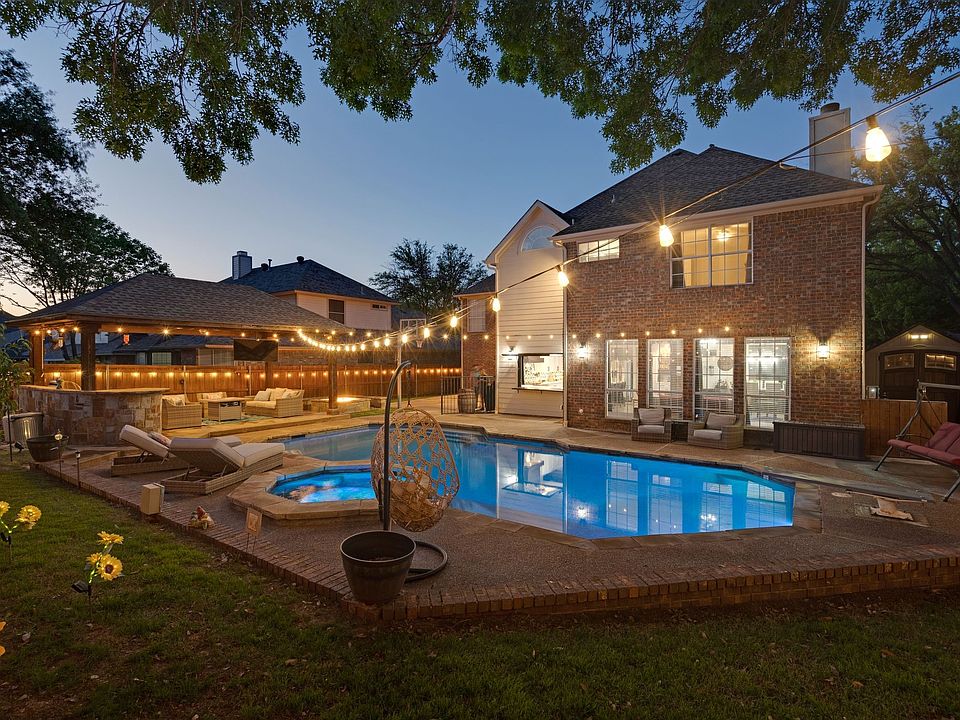 Welcome to this beautiful home located in the highly desirable Glenwick Estates in Flower Mound. With the spacious open floor plan and thoughtfully designed layout, this home is perfect for both comfortable living and entertaining. The heart of the home is the beautifully appointed kitchen that opens to an inviting living and dining space. Enjoy effortless indoor-outdoor living with a kitchen serving window that opens up to the poolside bar. Enjoy your days and evening winter or summer in your backyard oasis, featuring a heated pool with spa and oversized fire pit, outdoor shower and pool bath perfect for summer fun and evening gatherings. Upstairs tucked away you will find a private mother-in-law suite with private bath offering ideal space for guests or extended family. This property truly has it all. Location is a bonus right down the street from Glenwick Park, with a fabulous playground, walking distance around the corner to the baseball field, pickleball courts and tennis courts. Shopping and grocery stores just minutes away.