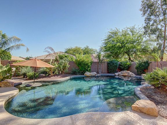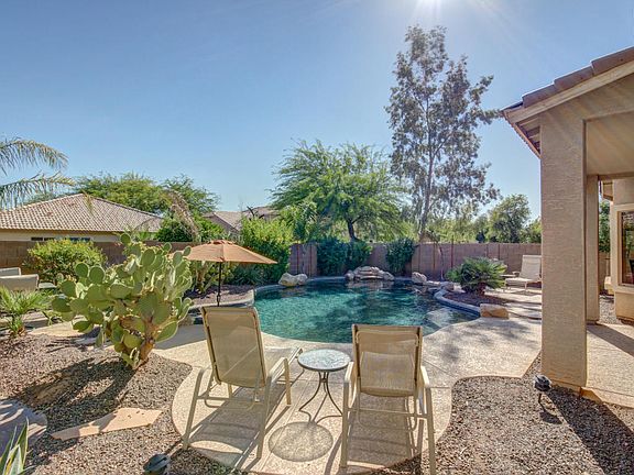 Absolutely beautiful split floor plan with a resort style backyard. The heated pool even has a sitting area with a place for an umbrella. Multiple entertaining areas make this well landscaped backyard an entertainer''s dream. Inside you will find wood and tile throughout. No carpet! Nice extras like a walk-in closet in the 2nd bedroom as well as the master. Neutral paint scheme. This home is move-in ready. Just about all inside and outside furnishings are available for sale. Would make a perfect vacation rental or home.