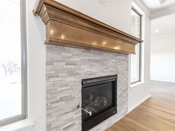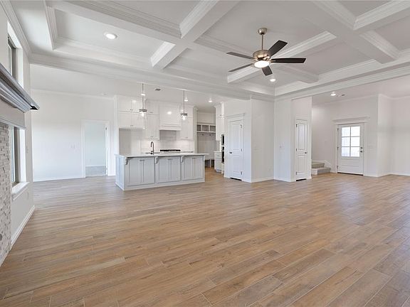 FENCING AND BLINDS INCLUDED! This Cornerstone Bonus Room-5 bedroom floorplan includes 3,230 Sqft of total living space, which includes 2,950 Sqft of indoor living space & 280 Sqft of outdoor living space. This spectacular home offers 5 bedrooms, 3 full bathrooms, 2 covered patios, 2 dining areas, a spacious study, a mudbench, a utility room, & a 3 car garage with a storm shelter installed. The great room welcomes a gorgeous coffered ceiling, a gas fireplace with our stacked stone surround detail, two 7' windows, wood-look tile, a ceiling fan, & a barndoor. The breathtaking kitchen features stainless-steel appliances, decorative tile backsplash, 3 CM countertops, a center island equipped with a trash can pull-out, stunning pendant lighting, a separate pantry, & custom-built cabinets to the ceiling. The attractive primary suite boasts a sloped ceiling detail, our carpet finish, windows, & a ceiling fan. The prime bath features separate vanities, a walk-in shower, a Jetta Whirlpool tub, & a HUGE walk-in closet. Outdoor living supports a wood-burning fireplace, a TV hookup & a gas line. Other amenities include a whole home air filtration system, a tankless water heater, R-44 insulation, & more!