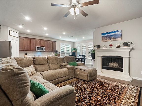 Wood burning fireplaceWell maintained lawnOpen floor planGorgeous backyard patioFlex spaceQuartz countertopsLarge walk in closet