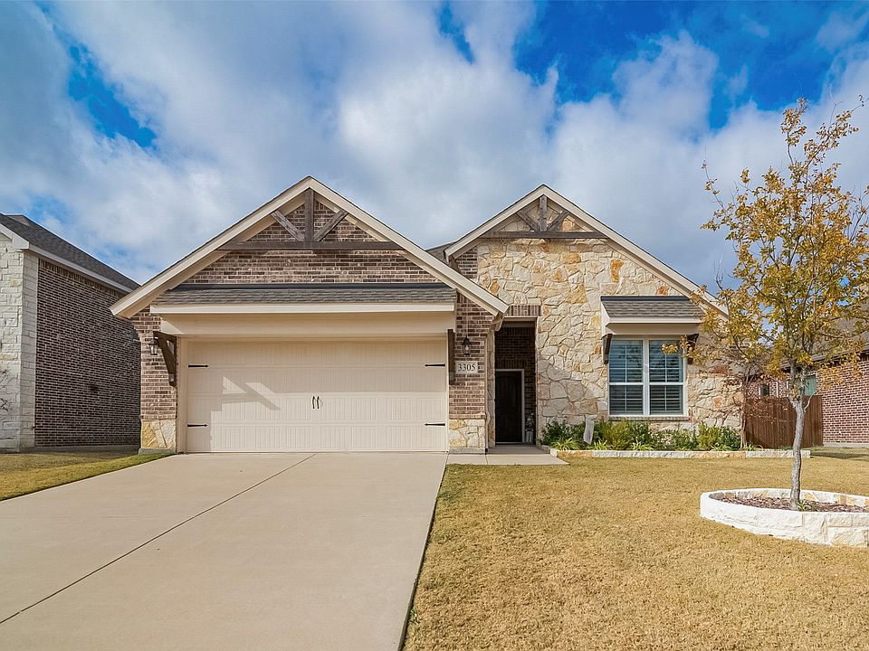 Welcome to 3305 Greymoore Drive- A well appointed, highly energy efficient home located in Green Meadows, a friendly, walkable, and well maintained neighborhood. You will love this location, nestled off of Highway 5 with quick access to US 75. This home is completely move-in ready and offers 3 bedrooms, 2 full bathrooms, and a flex space that can be utilized as a home office, play area, or a craft room. This lovely home features an open floor plan with a beautiful kitchen, complete with an oversized kitchen island, quartz countertops, single basin stainless steel sink, 42in cabinets, a spacious pantry, and gorgeous stainless steel appliances. Off the kitchen is the dining area which features a built in nook, perfect for your choice of a coffee or wet bar. The living room is cozy and features a wood burning fireplace, perfect for the upcoming cold season. You will love the primary suite which is a blend of space and comfort and leads to the primary ensuite complete with double sinks, a deep, luxurious tub, spacious shower with glass enclosure, as well as a large walk in closet. This home has an abundance of natural light throughout. The custom plantation shutters give the home an elegant and upscale feel. The utility room is spacious enough for a washer, dryer, upright freezer and includes a built in mudroom bench which serves as a drop space for coats and shoes before entering the living space. You will be amazed at how well maintained this home is. Find comfort in knowing this house features total encapsulated foam insulation for maximum energy efficiency. Gorgeous backyard patio is the perfect space to sit and relax while overlooking the well maintained lawn and lush tree covered lot line. The City of Anna features multiple grocery stores, dining and shopping options and is a great place to live, work, and play. This subdivision is completely built out so no need to deal with daily heavy duty construction traffic.