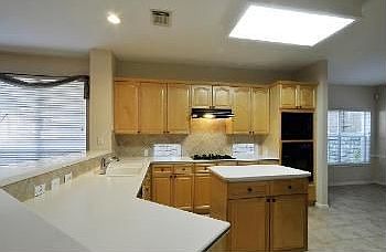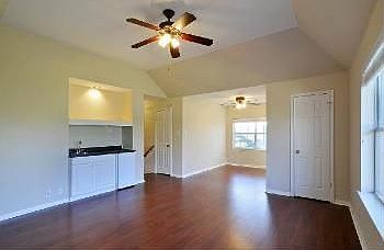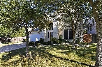 This house sits above street level without a steep entry or stairs. It faces the west with incredible sunset views. You have a view of Lake Travis from the upstairs (and if you are tall from the edge of the entry :) It is white natural stone, and backs up to a greenbelt in addition to a permanent utility easement on the left that provides a comfortable privacy buffer between the other homes. The bedrooms are upstairs, each with ceiling fans along with the game room/media room with a commercial grade Brazilian Cherry Hardwood laminate floor. A billiard ceiling and built in wet bar with fridge rounds out the room nicely.