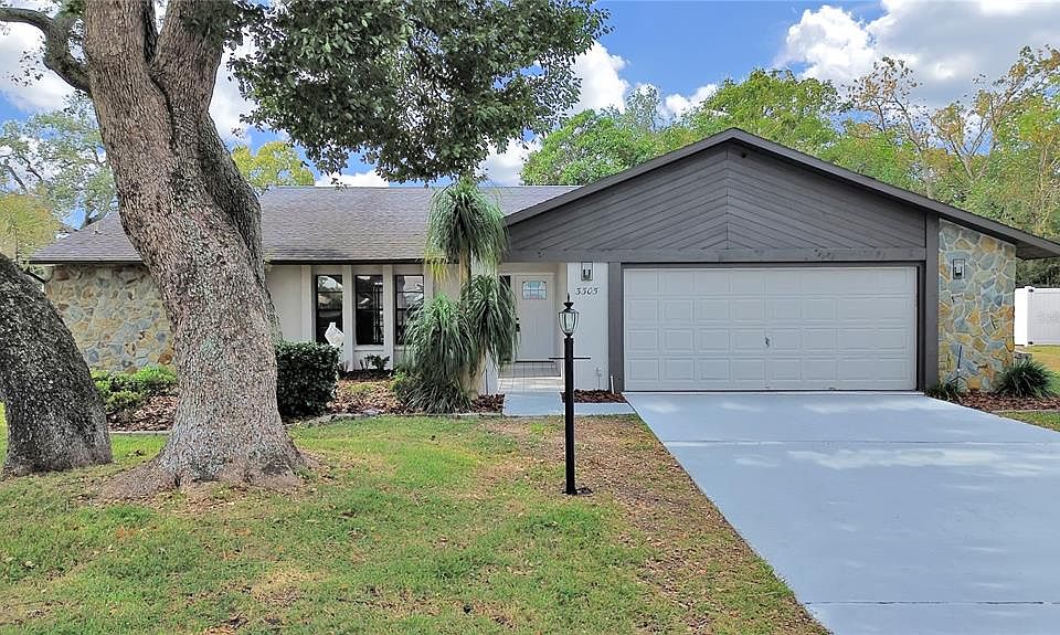 Welcome to your dream pool home in Spring Hill! This newly renovated 3-bedroom, 2-bathroom block home sits on a large corner lot and offers the perfect blend of style and comfort. As you step inside, you’re greeted by an open floor plan adorned with new flooring and fresh interior and exterior paint, creating a bright and inviting atmosphere. The kitchen has been beautifully renovated, featuring soft-close cabinets, stunning quartz countertops, and brand-new appliances, making it a chef's delight. This home boasts a thoughtful split-bedroom layout. The primary bedroom is a true retreat, complete with a stunning renovated ensuite bathroom, a walk-in closet, and direct access to the pool area. On the opposite side, you’ll find two spacious bedrooms and a large, stylishly renovated guest bathroom featuring a double vanity—perfect for family or guests. A generous laundry room adds to the convenience of this home and a spacious 2-car garage provides plenty of room for parking & storage. One of the standout features is the outdoor space. The sliding doors open wide to reveal an enclosed patio with ceiling fans and a bar top, creating a seamless flow between indoor and outdoor living. Step outside to enjoy the sparkling pool, fully screened in to provide a relaxing oasis on warm days. The oversized corner lot offers plenty of green space for activities and entertaining. Additional highlights include a 2020 A/C system and a 2018 water heater, ensuring comfort and efficiency. Rest easy knowing this home is located outside of flood zones and has sustained no damage from recent hurricanes. Spring Hill is known for its friendly community, beautiful parks, and convenient access to transportation, shopping, and dining. With a variety of recreational activities and a family-friendly atmosphere, this area is a wonderful place to call home. Don’t miss your chance to own this fantastic pool home in Spring Hill—schedule your showing today!