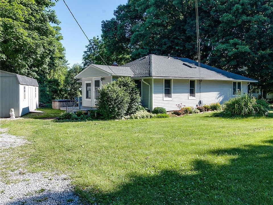 Welcome to this well-maintained and move-in ready Perry ranch! Sitting on just under two acres of land, this property is perfect for relaxing and entertaining. Outside, the property features a spacious back deck, a large shed for storage, a fire pit, and a beautiful pond. Inside, the ranch-style home features a foyer and closet that leads to a cozy living room with hardwood floors. Adjacent to the living area are a dining room and updated kitchen that overlook the gorgeous backyard. With two large bedrooms and a huge full bathroom, as well as a full basement with plenty of storage, this ranch is a must-see! Updates to this home include a new septic tank in 2016, furnace and a/c in 2011, roof in 2012, and kitchen appliances in 2011. Welcome Home!