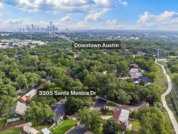 Welcome to 3305 Santa Monica - a stunning, renovated ranch-style home that perfectly blends modern comfort and stylish charm. This recently updated home offers 3 bedrooms, 2.5 bathrooms, a dedicated study/office, an oversized 2-car garage and sits on a spacious .24 acres. Key renovations include a new roof, HVAC system, water heater, and full replacement of the original cast iron plumbing with PEX piping. The home also features new windows, engineered hardwood flooring, tile in the bathrooms, and newly planted privacy trees in the backyard. The open floor plan provides natural light throughout, with a functional modern kitchen, living area with fireplace, and flexible spaces for both daily living and entertaining. A front courtyard offers space for outdoor seating, while the backyard has direct access to a walking trail. Located in central Austin, the home is close to downtown, the airport, and within walking distance to Mable Davis Park and Country Club Creek Trail, combining convenience with a quiet, outdoor-friendly setting.