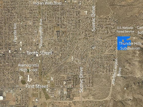Most of Alamogordo's home builders purchase their lots from a subdivision developer. Thunder Hills Subdivision offers an opportunity for the builder to claim the developers profit as well. These 47 lots, already platted and approved, adjoin Alamogordo's East city limits at Thunder Road. With an overall acreage of approximately 35 acres, the Purchaser can use the existing subdivision layout, or replat the property to increase the number of building sites as part of the process of annexing Thunder Hills into the Alamogordo City Limits. A city water main runs along the subdivision's North boundary, and city sewer is located in the alley along the Thunder Hills West boundary. Thirty of the lots have relatively flat terrain for easy development. The remainder of the lots form the hillside overlooking Alamogordo, offering builders "view lots" to enhance the appeal of their home designs.