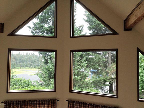Imagine yourself living in a chalet-style home with commanding windows, upstairs master suite, sunny deck and private back yard. This home provides laminate flooring in the living areas with carpet in the bedrooms. A full downstairs bathroom services two bedrooms and guests. The upstairs master suite has a large bathroom with jetted tub/shower and a balcony overlooking the back yard.
