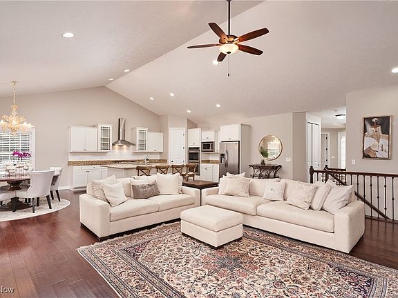 Move right into this exceptional former Ranch model located in the desirable Villas of Solon subdivision! This move-in ready home combines modern amenities with elegant finishes, making it the perfect choice for comfortable living and entertaining. As you enter through the foyer, you are greeted by an open floor plan, high ceilings, and an abundance of natural light! Gleaming wood floors flow throughout the great room, dining room, foyer, and kitchen creating a warm and inviting atmosphere. The vaulted ceiling great room features a gas fireplace and is open to the spacious kitchen which boasts granite counters, upgraded cabinetry, stainless steel appliances, a breakfast bar, a walk-in pantry, and a sunny eat-in area with access to an impressive upgraded Trex deck. You will love the primary suite, which features a walk-in closet, a beautiful en-suite bath with jetted tub, a granite countertop, and a tile shower. Two additional large bedrooms and a full hall bathroom, a laundry room along with an unfinished walkout lower-level basement, and a two-car attached garage complete this beautiful home. Ideally situated near shopping, dining, highways, and medical facilities. This stunning property is a remarkable opportunity you won't want to miss!
