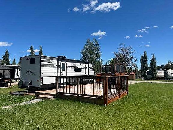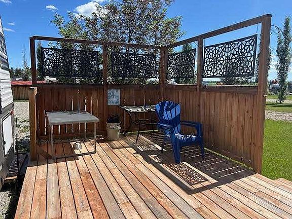 Welcome to Sundre River Resort – a unique opportunity to own a share in a beautiful, family-oriented community surrounded by nature. This co-op style ownership gives you exclusive use of your own fully serviced lot, complete with water, sewer, and power, all nestled along the scenic Bearberry Creek. #118 offers a generous 4,876 sq. ft. lot, with a fully finished, insulated, and powered 10' x 10' bunkie—perfect for guests, a studio, or a cozy retreat. An additional 35 sq. ft. storage space conveniently keeps extras tucked away. Enjoy outdoor living with a built-in fire pit, a charming swing, and the added privacy of having no neighbors behind you. A spacious 417 sq. ft. deck provides the perfect setup for your RV, outdoor entertaining and lots of BBQ's. Sundre River Resort is more than just a place to park your RV – it’s a welcoming, tight-knit community where friendly neighbors become friends. With over 50 acres of forested trails and river paths to explore, it’s easy to enjoy nature at your own pace. Kids can burn off energy at any of the three playgrounds or the large soccer field, while your four-legged family members will love the designated off-leash dog area. The resort features a spacious cookhouse and outdoor BBQ area, along with a clubhouse that offers laundry and hot showers. There’s always something fun happening at the park, from the exciting poker run and chili cook-off to themed seasonal celebrations like Halloween in August and Christmas in July. Whether you’re looking for a peaceful retreat or an active community, Sundre River Resort offers the perfect balance of both – with nearby golf courses, on-site RV storage, and a full calendar of social events. Come experience the charm, comfort, and friendship at Sundre River Resort. * The monthly maintenance fee is $180 and includes property taxes, sewer, water, electricity and garbage disposal. **Please note that the number listed for the property taxes is for the entire 160 acres and is covered by the monthly maintenance fee.