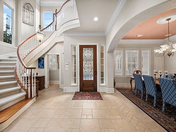 Gated private courtyard entryGorgeous foyerBuilt in storageFormal diningCovered back patioSweeping staircaseNew roof