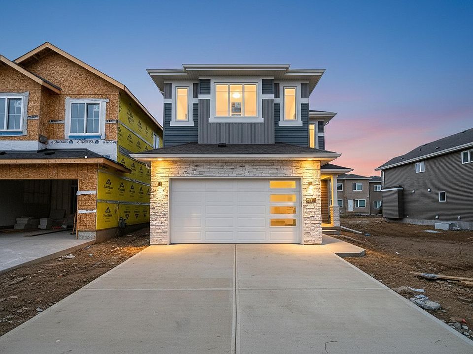 This stunning brand-new home built by Homes by New Era delivers exceptional modern living with 4 bedrooms and 3 full bathrooms, thoughtfully designed to impress from the moment you walk in. The main floor features an open-to-above great room that fills the home with natural light, along with a spacious main floor bedroom and full bath, perfect for guests or a private home office. The chef-inspired kitchen includes quartz countertops, ceiling-height cabinetry, and a walkthrough pantry, blending style and function for effortless cooking and entertaining. Upstairs, retreat to the luxurious primary suite, complete with a walk-in closet that connects directly to the laundry room for ultimate convenience. A stylish bonus room with a tray ceiling offers the ideal space for family movie nights or quiet relaxation. Modern touches continue throughout, triple-pane windows, a tankless gas hot water system, a garage floor drain and BBQ + Garage gas line. Appliances and blinds included!