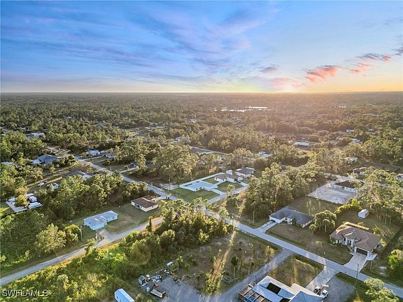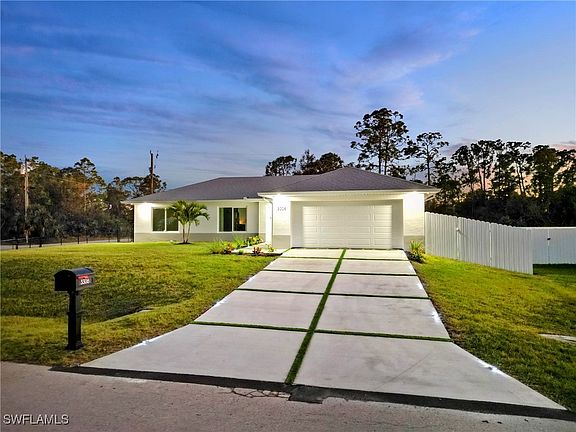 Nestled in a tranquil Lehigh Acres 33972 neighborhood, this custom home with over $25K in High-end finish on a corner-lot epitomizes modern luxury and convenience. The interior boasts sleek 24"x48" ceramic tile flooring and a contemporary kitchen equipped with two-tone cabinetry, white quartz waterfall countertops, and advanced Samsung smart appliances, including a 4-door French Door refrigerator and a Wi-Fi-enabled range with AirFry. Bathrooms offer a spa-like experience with LED-lit, anti-fog mirrors, self-cleaning bidet toilets, and stainless steel shower panel systems featuring rainfall and massage functions. Each bedroom includes custom closets with soft-close drawers, enhancing the home's thoughtful design. Enhanced security features comprise eight HD night vision cameras, a Ring Doorbell, and solar-powered driveway lights. Outdoor amenities include a screened lanai and a fully fenced yard with a 6-foot privacy fence, complemented by a rain-sensor-equipped sprinkler system. With landscaping and pest control services pre-paid for one year, this move-in-ready residence seamlessly combines style, comfort, and practicality. Conveniently located near local amenities, schools, and parks, it offers both serenity and accessibility. Schedule your private showing today!
