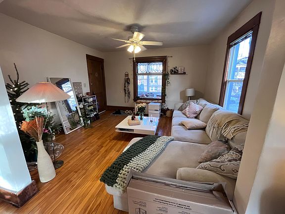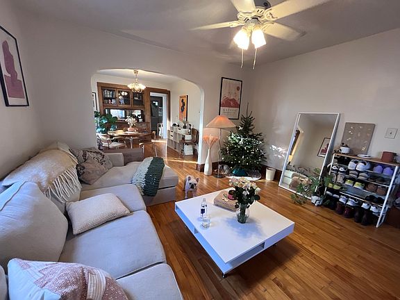 Spacious living room plus formal dining room perfect for entertaining. Undercabinet lighting in kitchen provides bright workspace. Building is a historic 4plex full of craftsman detailing. This is a first floor unit.