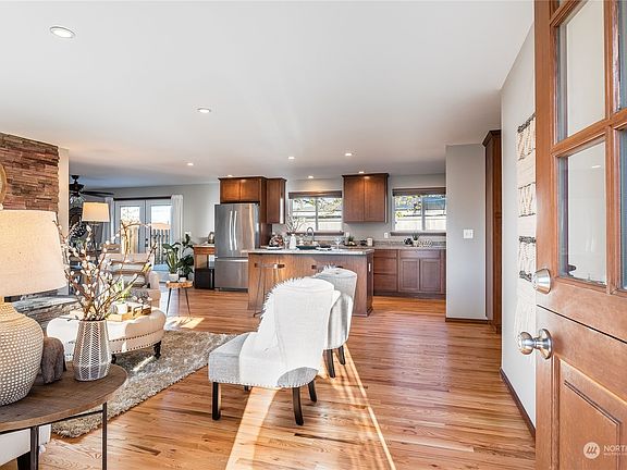 Fall in love with this spacious, updated Renton Highlands rambler! Convenient no-step entry from the driveway into 1,390 sq ft of gracious, one-level living. Newly refinished hardwood floors create a beautiful setting for the open floor plan, combining kitchen, living, and dining. The home chef will enjoy the large island and ample cupboards. Updated in the last few years with new siding, new roof, new baths and kitchen. Tons of room for bikes and kayaks in the attached garage, with brand new garage door. Relax on the back deck all year long. Just two miles to the 57-acre Gene Coulon Park along the sparkling Lake Washington, and a short drive to Renton Landing with shops and restaurants. Ideal commuting spot. Come see and make it yours!