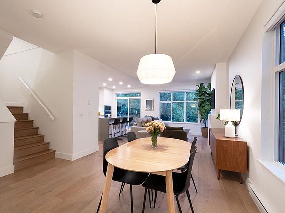 FABULOUS, DUPLEX STYLE TOWNHOME IN COVETED HADLEIGH ON THE PARK!! This immaculate home boasts privacy and serenity as it's nestled against the greenbelt...walk out to trails from your own fenced yard! Upscale, Tudor inspired complex boasts a great location across from Pioneer Park. Main level features eng. white oak flooring, gorgeous Chef's kitchen with entertaining island, stone counters, custom white cabinetry, and upscale, panelled appliances. Oversized windows bring in abundant natural light and lovely greenbelt views! Up are 3 generous bedrooms, each with an ensuite. Primary has a huge walk-in closet and a gorgeous ensuite. Lower level is bright and offers large Rec Room, a large bedroom w/walk-in closets and full bath. Walk out to your private yard, enhanced with artificial turf!