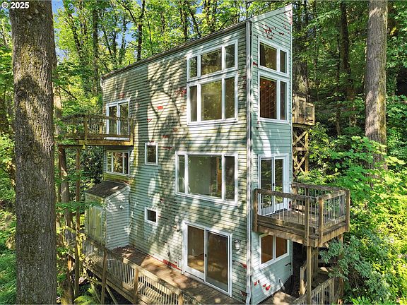 IMPROVED PRICE! Set along tree-lined Fairmount Blvd, this Northwest Contemporary offers a sense of layered privacy just minutes from downtown and OHSU. Native plantings and shifting valley views surround the four-level home, where large windows, built-ins, and hardwood floors create a warm, functional interior. Multiple decks and garden pockets extend the living space outdoors, while nearby trails lead to Council Crest and Marquam Nature Park. Fairmount’s 3.5-mile loop, popular with walkers, runners and bikers, adds to the sense of living at the edge of the forest, yet never far from the city. Upgrades include new house generator, new furnace, and 95% water piping replaced with Pex. This is an exceptional home shaped by its setting, grounded in both privacy and tons of possibility. [Home Energy Score = 2. HES Report at https://rpt.greenbuildingregistry.com/hes/OR10238084]