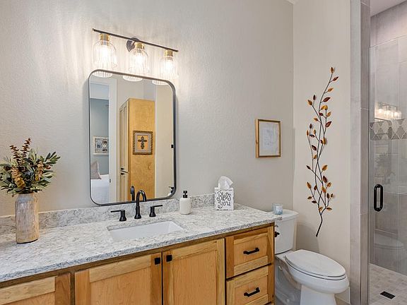 Office nookFenced grass backyardCustom built insXeriscape in the frontCustom firepitCustom roman shadesWhite oak floors