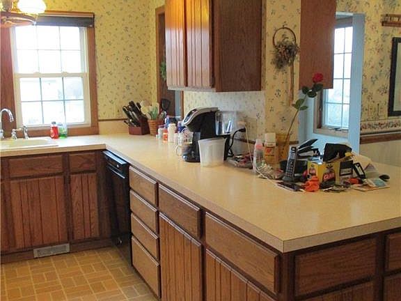 Incredible amount of living space in this one, approx. 2,300 sq. ft. 4-bedrooms and 2-full and one half bath. Main floor master or in-law suite with laundry and 9 x 7 walk in closet. 3-bedrooms and full bath upstairs. Huge kitchen with extra lighting is ready for the baker or chef in you and a breakfast bar. Large dining room with gas fireplace and 5 x 5 atrium area. Large breezeway could be used as a family room. Sun room overlooking the back yard, office area and 10 x 10 bakery room with sink- maybe a great craft room? Unfinished basement and concrete crawl space. Basement has been water-proofed. Fruit/wine cellar too. Located on an acre of land this back yard is nice and private. 1.5-car attached garage and 1-car detached garage (20 x 20) plus a shed out back with electric and gas line as there used to be pool in the back yard. All kitchen appliances and washer/dryer stay with the home. Dog Kennel off the office office area too. 12-month America's Preferred Home Warranty included with the sale. Seller is in the processing of clearing items out of the house. Appointments are required to view this property.