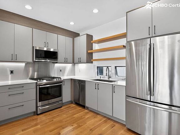 Custom kitchen cabinetsBrand new custom blindsCeramic tileReclaimed wood on exteriorTwo roof deck patiosCentral air conditioningHigh end appliances