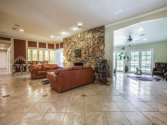 Ranch style home 4119 sqf 4 bed, 3 bath, 3 car garage in main house. Separate outbuildings include the Guest house with a full bath, kitchen and 2 car garage and a 2 story Barn with 1XL car garage for parking or storage, 2 horse stalls with finished quarters upstairs, full bath, large deck overlooking pond with 24X15 covered pavilion. Main house has Extensive Travertine tile floors throughout, new carpet in bedrooms, new wood floors in kitchen, breakfast and formal dining. Full size wet bar in formal living room with stone fireplace perfect for entertaining. This Horse property is on 2.5 acres, with easy access to Bush turnpike.