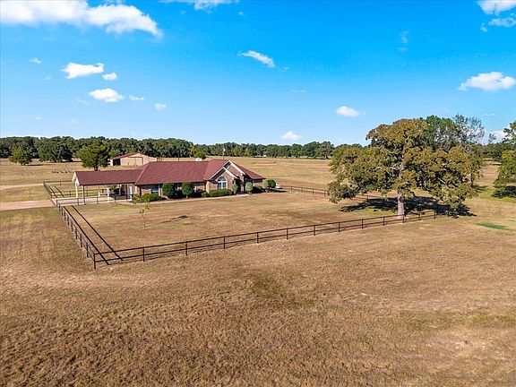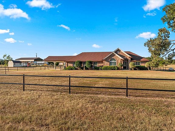 Trinity Ridge Ranch, A CHARMING COUNTRY RETREAT on 20 acres surrounded by AG EXEMPT pastures, featuring a beautifully landscaped three bedroom, two bath Tilson Custom Home with a large flex space used for crafts, office or fourth bedroom and a double carport. Step outside onto the beautiful, large covered patio for entertaining, cookouts and enjoying peaceful sunrises and sunsets. Recent new roof, gutters and paint make this property move in ready. The Large Barn has fresh paint and is complete with electricity, water, Stables, Workshop and plenty of Storage. A Double Covered Motor Home structure with concrete pad and power. There is a Storage Building and a nice Loafing Shed for animals. The property has pipe fencing with beautiful entry and automatic gates, functioning water well and perfect location for a pond with woods in back that have maintained horse trails with deer and other wildlife. The Property is located only 7.5 miles West of Seven Points, Texas with convenient shopping including a Walmart, Lowe's and other shopping, fine dining and access to beaches, nice parks and boat ramps at Cedar Creek Lake.