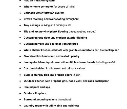 Heated pool and spaModern light fixturesOutdoor fireplaceOversized islandScreened lanaiOutdoor kitchenCustom garage door