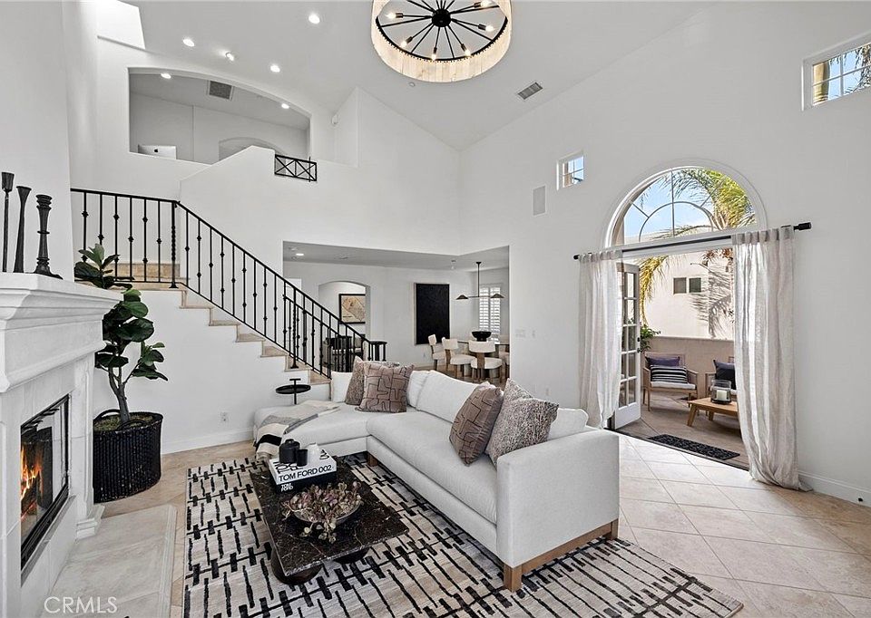 Timeless modern Mediterranean in the heart of Newport Heights. This chic, light-filled home offers three spacious bedrooms plus a versatile flex space—perfect for a home office. Soaring ceilings and new designer lighting accent the open floor plan, while three fireplaces add warmth and character throughout. The living and dining areas open seamlessly to a wraparound outdoor space designed for entertaining.