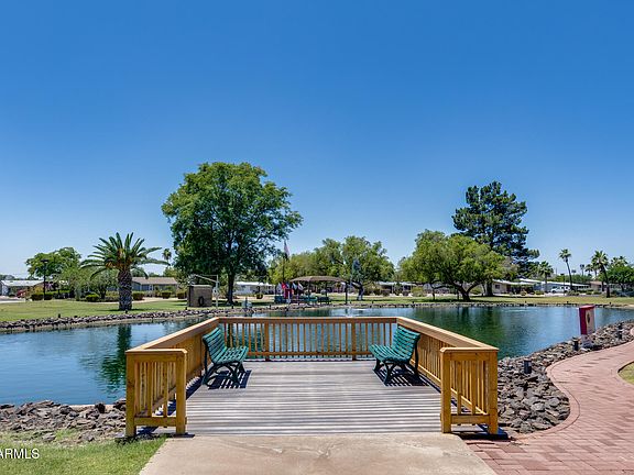 Discover the perfect retirement retreat in this beautifully updated 2-bedroom, 2-bath home, ideally located in a vibrant 55+ gated lake community—on OWNED land with low monthly HOA fees! Bright and airy with large windows, elegant wood-look vinyl flooring, and stylish lighting throughout, this timeless home blends charm with modern convenience. The spacious kitchen features a large island, tile backsplash, and generous storage, while both bedrooms offer walk-in closets for ultimate comfort. Enjoy covered patios, a low-maintenance backyard, and an extra-large RV parking space. Community perks include a serene lake, heated pool and spa, pickleball courts, and convenient access to a nearby bus stop. Live the lifestyle you've been dreaming of!