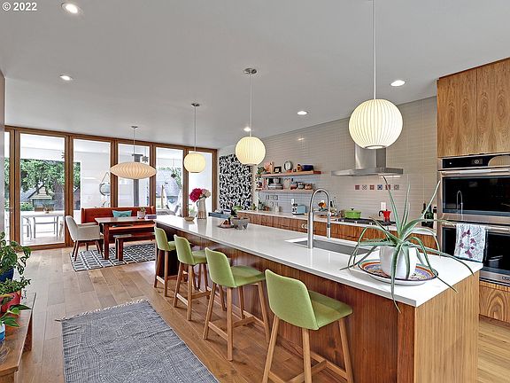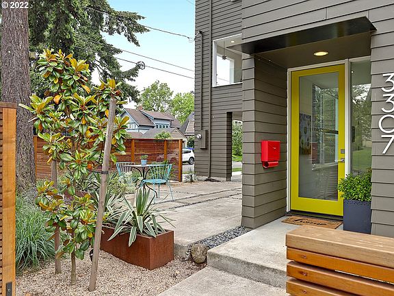 Spectacular display of modern design by award wining architect, Ben Waechter. Light filled living room & walnut stair column w/hidden pantry & powder bath. An elegant 20 ft. stackable wall system opens fully to allow for true indoor/outdoor living. Open air covered patio w/gas fireplace & tile floors can be enjoyed throughout the seasons! Main floor bdr & bath w/separate outside entry for studio or guest suite. Lives like a detached home w/private patio garden & 2-car garage! Amazing location! [Home Energy Score = 8. HES Report at https://rpt.greenbuildingregistry.com/hes/OR10167431]