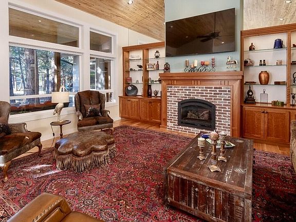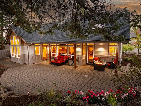 Discover luxury living in Awbrey Glen, one of Bend's most sought-after gated golf communities. On the 6th tee box, this stunning home blends elegance, comfort, and the Central Oregon lifestyle. The great room features beautiful hardwood floors, vaulted wood ceilings, custom built-ins, and large windows filling the space with natural light and golf course views. The modern kitchen offers a 6-burner gas cook-top, large island, and ample storage, perfect for entertaining. The dining area flows seamlessly into the kitchen and great room. The main-level primary suite includes vaulted wood ceilings, dual sinks, a walk-in shower, and spacious closet. Outdoor living shines with a covered wood-ceiling patio. The garage has a bonus area w/ workbench and cabinets providing excellent storage. Embrace luxury home living, outdoor lifestyle, and premier Bend amenities. Listing agent is related to the sellers.