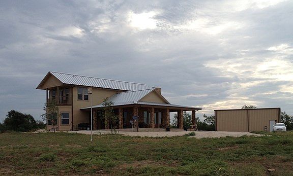 Exceptional 111-acre ranch with beautiful custom home, hill-top setting. Views, creek, ponds, hunting, fishing, recreation. Located just off TX130S/US183S, this ranch offers an ideal country residence for commuting to Austin, San Marcos areas. Great get-away. 5 stocked ponds, great fishing . Excellent hunting - deer, turkey, doves, other wildlife. Wooded areas complemented with sunflower, maize, and hay fields to support wildlife, plus livestock and horses. A flowing Elm Creek traverses the property, separating the fields and woods. 60'x 45' metal barn, concrete floor. Ag exempt. Lockhart ISD
