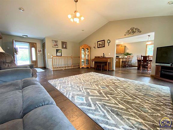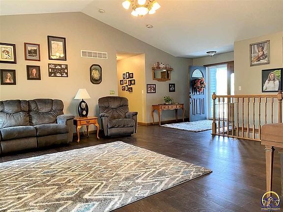 This energy-efficient (Structural Insulated Panel construction w/6' walls) Shawnee Heights rancher features welcoming front porch, vaulted ceiling, gas fireplace, engineered hardwood flooring, Custom Woods cabinetry, Mstr Ba w/privacy stained glass/whirlpool tub/sep shower/double-sink vanity, 9' ceiling in basement w/egress windows for future expansion, fresh air exchange system, vinyl siding w/aluminum wrapped soffit & windows (double-hung), spacious back yard w/privacy fencing & separate garden area!