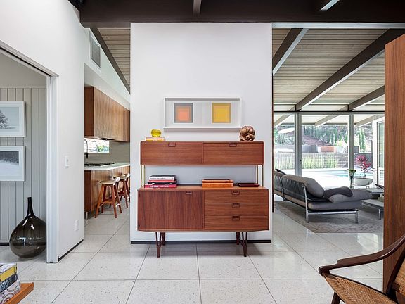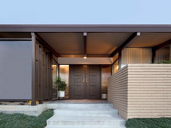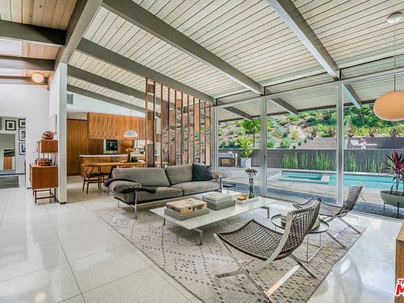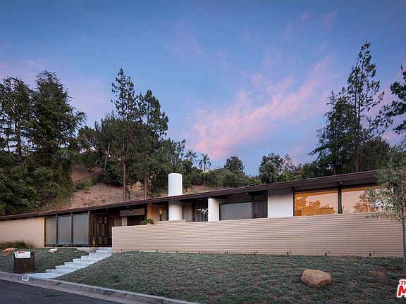 Set on nearly an acre at the end of a cul-de-sac in the Mulholland Corridor, this Mid-Century Modern created by Richard Dorman is part of the prestigious Sherman Oaks Estates. The home has been fully restored to its original vision and footprint by the current owners and award-winning restoration artist Chris Salay. Features include post-and-beam construction that dramatically showcases the house's structure; Among its dramatic features are the original exposed wood tongue-and-groove ceilings, floor-to-ceiling glass walls and terrazzo floors. A panorama of city lights can be seen from the back yard and viewing porch. Every room in the home has a private garden, further blurring the lines between indoor and outdoor living. This is truly the opportunity to own the architectural of a lifetime.