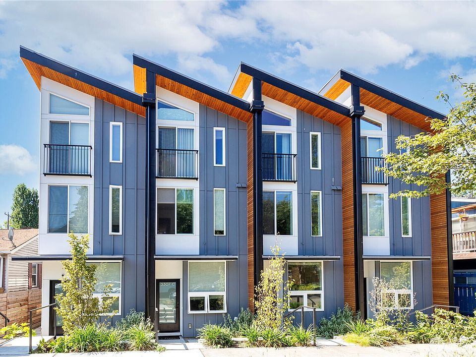 Modern architecture, newer spacious townhome in prime quiet location. Soaring windows allow the home to be drenched with sunlight. All hardwood flooring except bathrooms. Open concept kitchen with gas stove. Primary suite with heated bathroom floor & Juliet balcony. Designer finishes, energy-efficient. 2 Ductless HP-Mini Splits cool your summer. Gas tankless water heater. Tons of storage. Fully fenced backyard. 7 mins walking distance to light rail station. 3 minutes walking distance to public schools. Ample street parking. No HOA. Close to all amenities. Easy commute to DT Seattle & Eastside. Perfect for first time home buyer going back to the office. You can also make it a great rental property. Move into your new home before the Holiday.