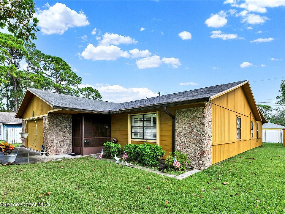 Well-maintained 3-bedroom, 2-bath ranch located in a quiet Edgewater neighborhood. The home offers an open floor plan with a spacious living area and functional kitchen. Split-bedroom layout provides privacy, and the primary suite includes a full bath. Large backyard with room for outdoor activities or future additions. Conveniently located near schools, shopping, and dining, with easy access to US-1 and I-95. Short drive to the Intracoastal Waterway and New Smyrna Beach. Suitable for primary residence or investment use.