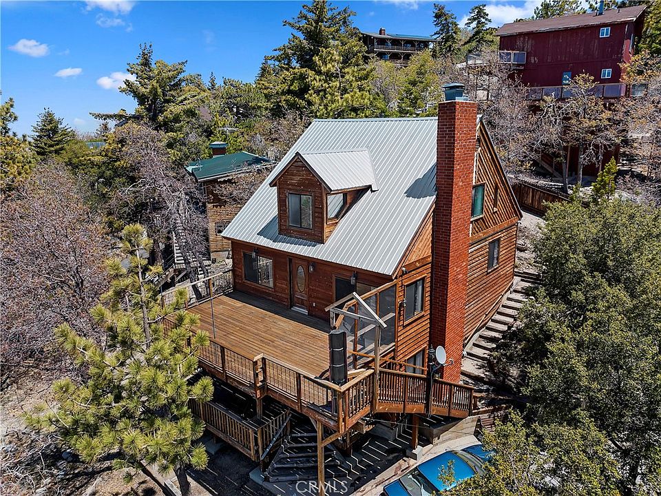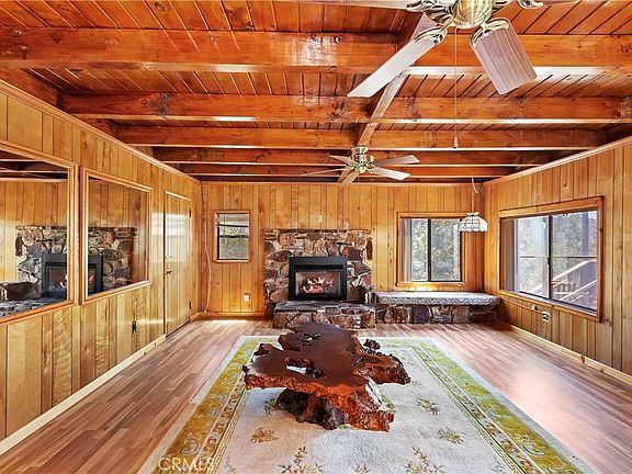 This Mountain Cabin is located in Green Valley Lake which is referred to as the ' HIDDEN GEM" of the San Bernardino Mountains and is a higher resort community that is surrounded by National Forest with views of the City Lights, Saddleback Mountain, Desert and forest. The main level features the living room with big picture windows, ceiling fans, stone fireplace for those cold snowy winter days, laminate flooring, remodeled galley kitchen with granite counter tops, newer appliances, pantry, plenty of cabinets, dining area, laundry room with a back door, bedroom with closets and a full bathroom. The upper level is the En-Suite bedroom with dual closets, lots of windows, full bathroom, office with views of Lake Arrowhead and plenty of storage room. The lower level has it's own entry, lower deck, family room, fireplace, 3/4 bathroom, work shop, storage room and built-in book shelves. Has a large upper deck where you can sit and enjoy the sunsets or simply take in the serenity and clam beauty of a quiet forested community and is perfect for relaxing and entertaining family and friends. Has a newer tank less water heater, generator, nice side yard with plenty of parking. Green Valley Lake is a four season resort community and has plenty to do all year round. There is hiking, biking, swimming, fishing, boating, a volleyball court next to the lake and a campground at the end of the road, close to the ski resorts of Snow Valley and Big bear. Walkable to the lake marina and the village
